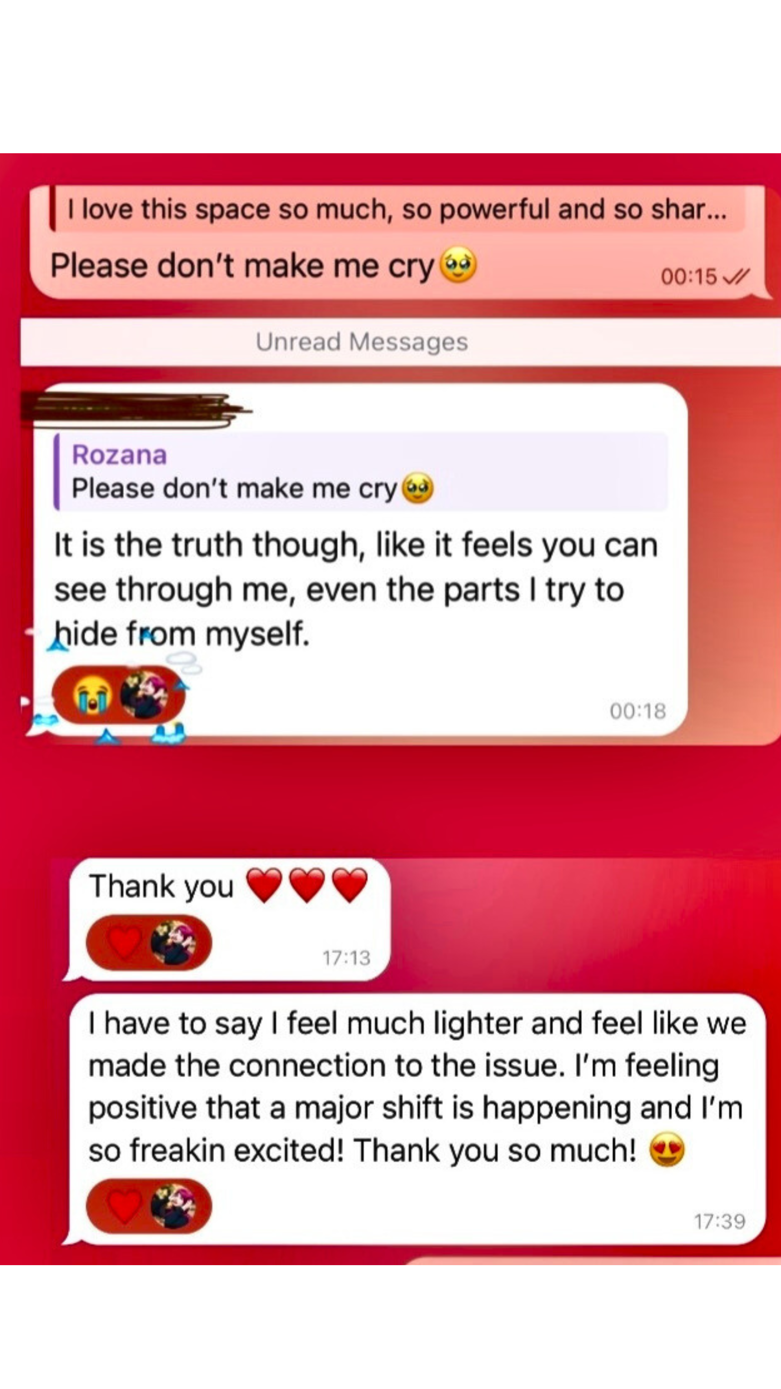 🌹Weekly themed group calls - Mix of teaching, hot seat coaching & real-time embodiment aligned with the month's theme